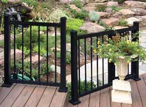 Peak aluminum railing black 6 ft. Available in textured black and anodized aluminum, two adjustable lengths: With every rail kit ordered, add a matching length baluster kit in either 36 or 42. Kits include rails, curved balusters, mounting brackets, and fasteners for wood, concrete, metal. Makes for a fast assembly.